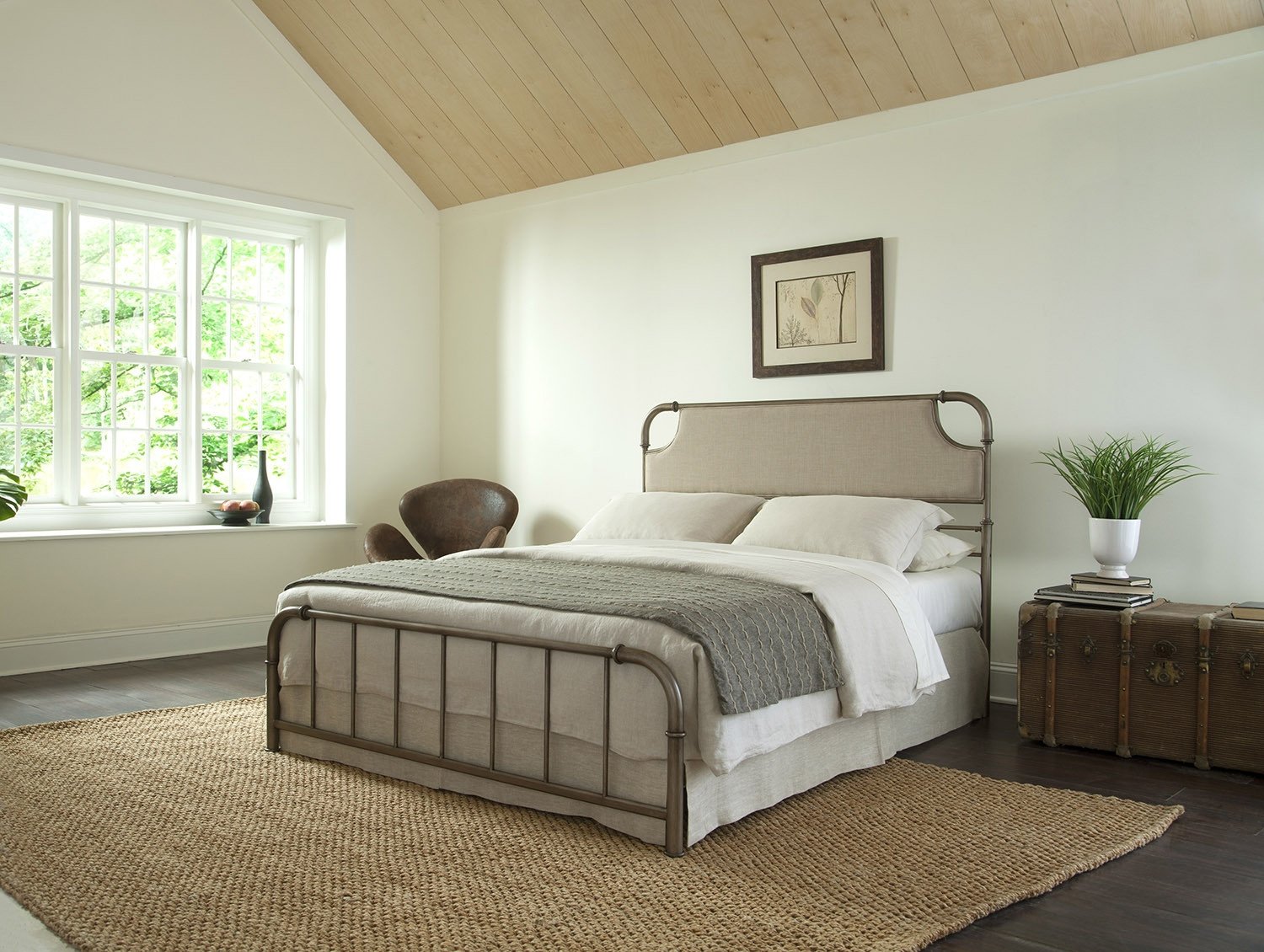 This neutral toned upholstered Sn@p bed blends classic and chic style that will fit into any décor. The Aged Iron finish paired with the Sandstone upholstered headboard complete this timeless design.