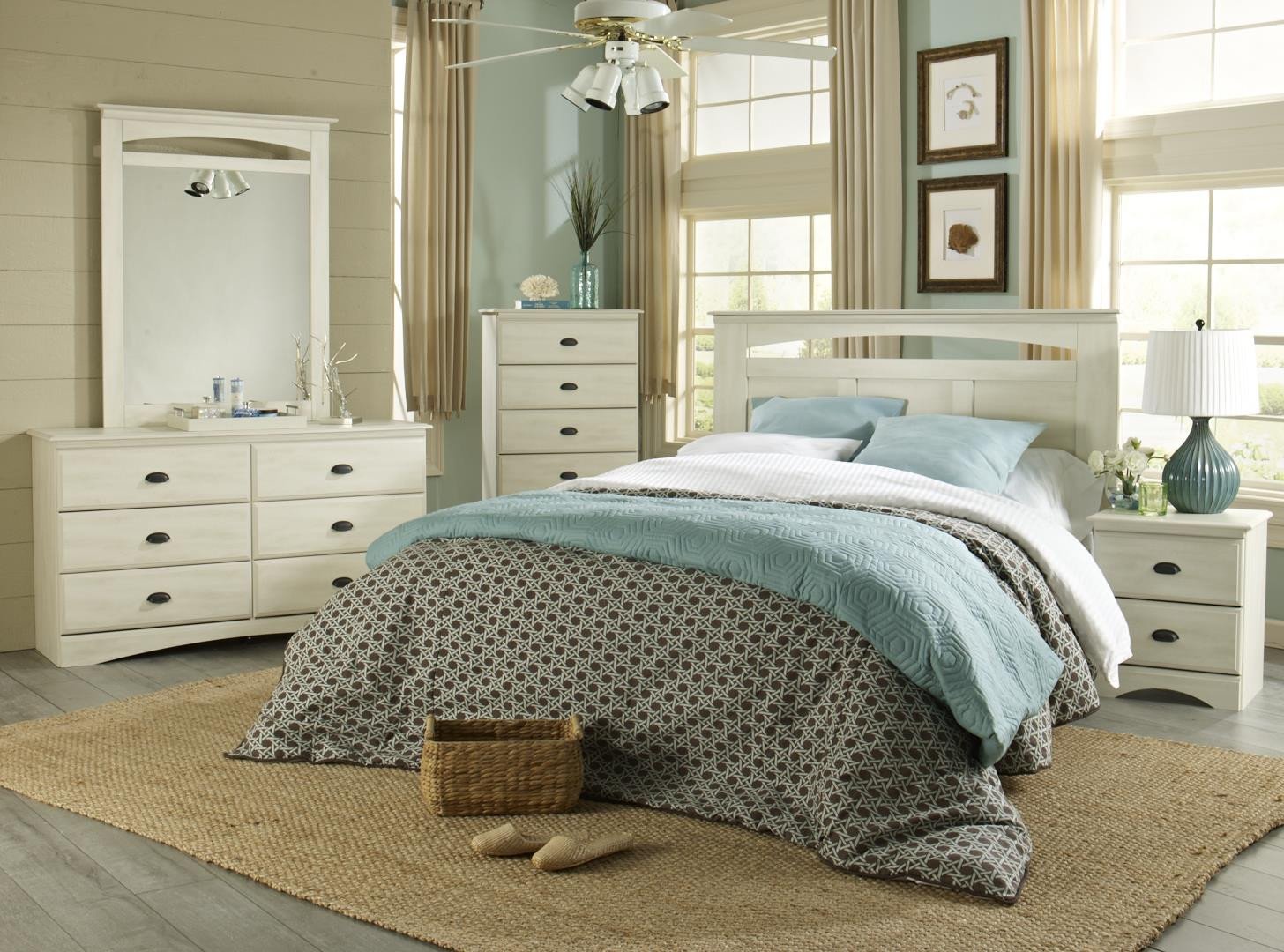 Relaxed and refreshingly casual. Slightly distressed weathered white finish adds freshness while charming iron-rust hardware accentuates the cottage feel of this collection.