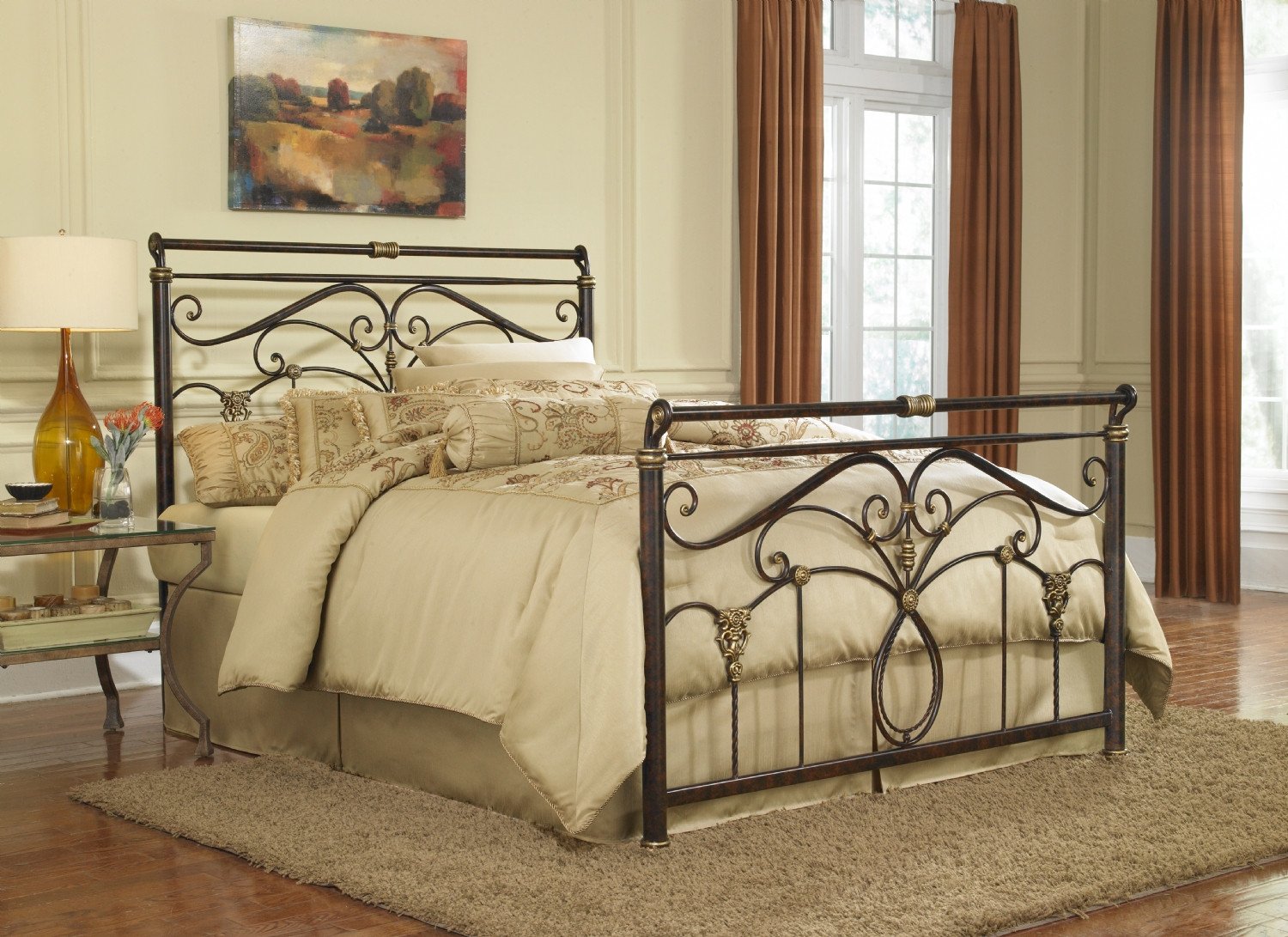 The Lucinda Bed is a study in affordable elegance and conveys an atmosphere of drama and romance. The subtly sleighed top rail on the headboard and footboard along with unique castings and intricate scrollwork give this bed an unparalleled presence. The shimmering soft golden highlights on the castings are the perfect accent to the rich Marbled Russet finish. This distinct color combination truly makes a compelling statement of understated luxury. Available in full, queen and king sizes. Can be purchased as a headboard only.