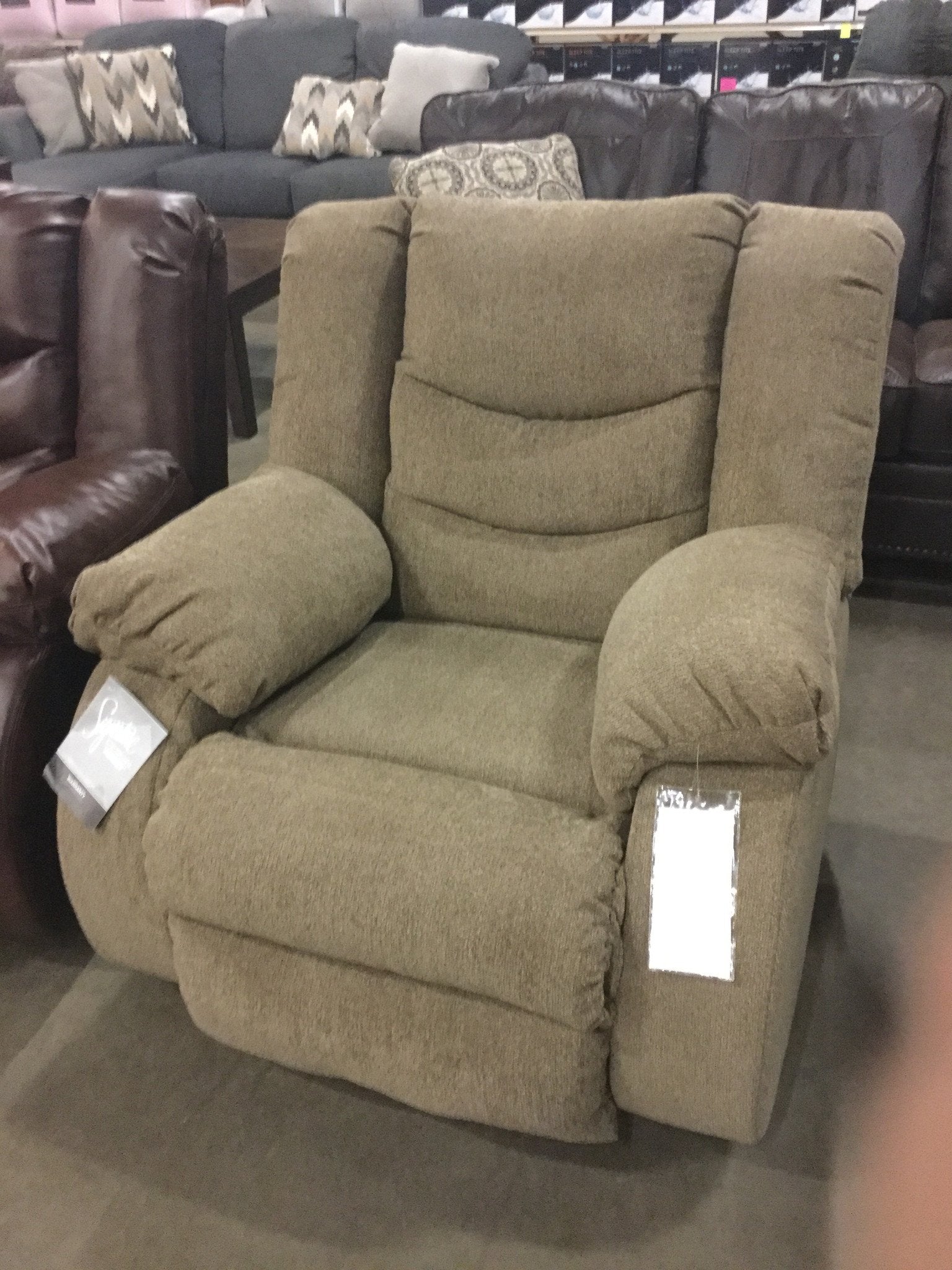 | Item Description: | The Tulen rocker recliner puts the win in winning. Its waterfall back design and doubly plump pillow top arms team up with soft chenille fabric to go for the goal. Ample seating room makes the comfort possibilities endless. Sit back and relax. You won’t go wrong with this recliner. |